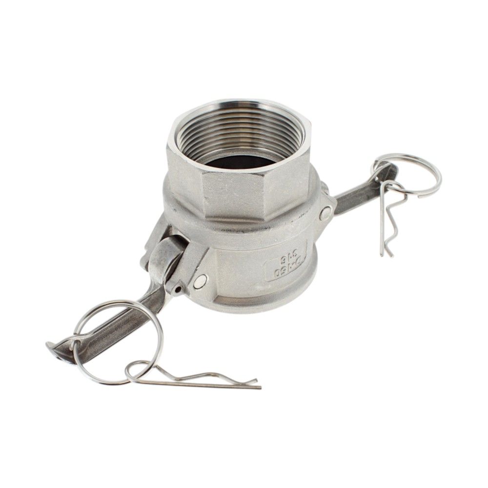 The 1.1/2" Type D X BSPP Female Stainless Steel Camlock Coupling is a robust and reliable connector designed for efficient fluid transfer in various industrial and agricultural settings. Made from high-quality stainless steel, this coupling offers excellent corrosion resistance and durability, ensuring a long service life even in harsh environments. It features a BSPP female thread, providing a secure and leak-free connection. This camlock coupling is an ideal choice for tradespeople and DIY enthusiasts looking for a quick and efficient coupling solution for their machinery and fluid systems.