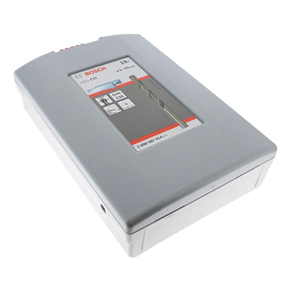 The 1-10 mm 19-Piece ProBox Metal Drill Bit Set HSS-Co DIN 338 is a genuine Bosch set designed for accurate drilling in tough metals, including stainless steel. Manufactured from high-speed steel with a cobalt alloy (HSS-Co), the bits offer high heat resistance and long service life under continuous load. Made to DIN 338 (jobber-length) standards, each bit has a straight cylindrical shank for use in standard 3-jaw chucks on cordless drill drivers, corded rotary drills, and bench or pillar drills. Covering 1.0 mm to 10.0 mm, the set suits fine and general metalworking tasks in fabrication, installation, and maintenance. Supplied in a robust ProBox for organised storage and quick size selection. Genuine Bosch Part, OEM No. 2608587014.