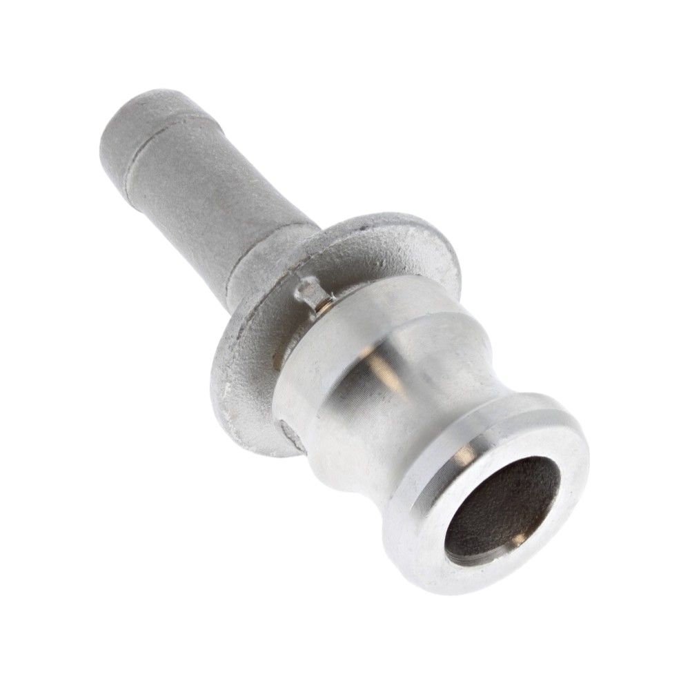 Type E cam and groove adapter x hose tail, male camlock adapter x hose shank, hose barb camlock fitting, stainless cam and groove hose connector, Type E hose shank adapter, quick-connect cam fitting for 1/2" (12.7 mm) hose.
