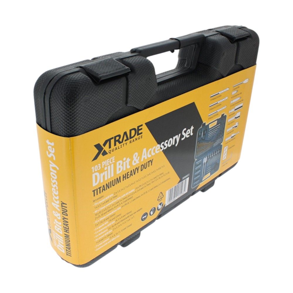 The Bosch Multi-Material Drilling and Screwdriving Set (103 Piece) is a complete bit kit for use with standard drill drivers and screwdrivers. It covers common drilling and fixing tasks across wood, plastic, concrete, brick, and masonry. The selection includes metal, wood, and masonry drill bits, holesaws with an adapter, a wide range of screwdriver bits, longer 50 mm bits for improved access, and nut setters for hex-head fixings. Bits are made from durable steel and designed for accurate, clean results when used with correctly set speeds and feed. Supplied in a tough plastic carry case for organised storage and easy transport on site or at home. This is a genuine Bosch part, OEM No. 2608594070, suitable for both trade and DIY users who need a reliable multi-purpose set.