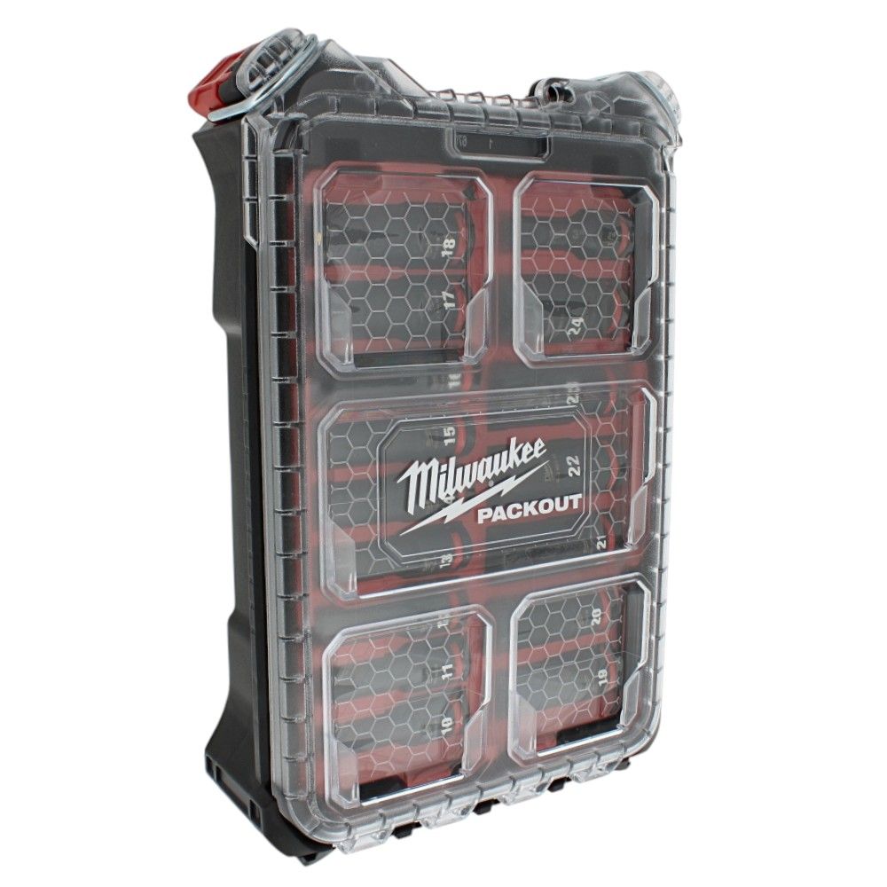 The Milwaukee 16 Piece 1/2 in (12.7 mm) Hex Deep Impact Socket Set with PACKOUT organiser is a durable kit for heavy-duty fastening and removal tasks. Made from SHOCKWAVE IMPACT DUTY Chrome-Molybdenum steel, it delivers high strength with reliable impact performance. The set covers common metric sizes from 10 mm to 24 mm and includes a 75 mm extension for extra reach in tight spaces. Each deep socket features a 6-point profile to grip flats, helping prevent fastener rounding. Supplied in a compact PACKOUT organiser for secure storage and transport. This is a Genuine Milwaukee part, OEM No. 4932480943, suitable for 1/2 in (12.7 mm) drive impact wrenches, ratchets and power tools across site, workshop and garage use.