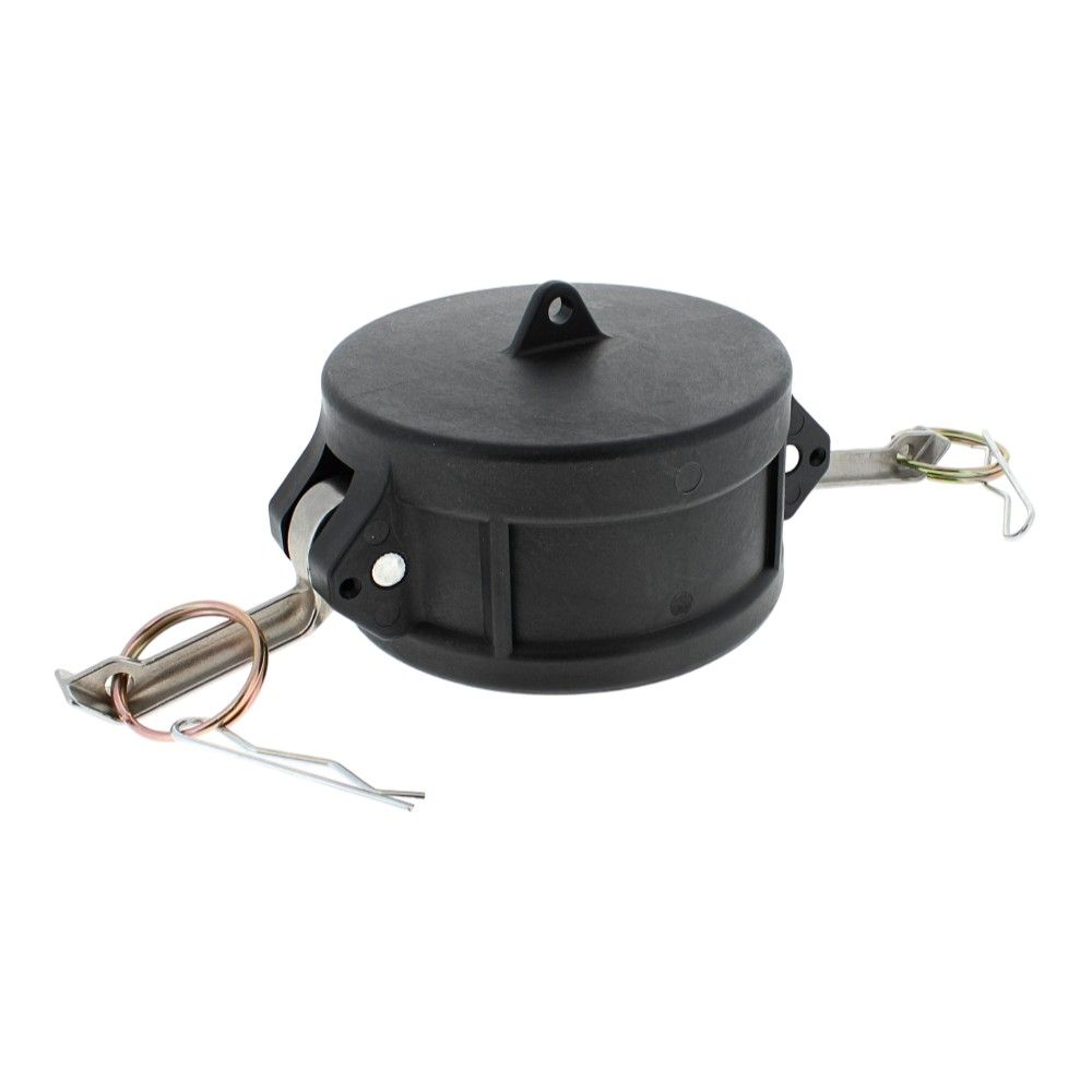 The 3" Type DC Camlock Cap is a Genuine Part designed to seal and protect the open end of 3 inch cam and groove fittings. Made from tough, chemical‐resistant polypropylene in a hard‐wearing black finish, it helps prevent leaks, spills and contamination when hoses or pipework are disconnected. The Type DC design uses two cam levers to clamp securely onto 3" male camlock adapters (Types A, E and F), giving a fast, tool‐free fit. Commonly used on water pumps, site bowsers, transfer hoses, sprayers and process lines, it suits construction, agriculture and water treatment tasks. Sized to suit 3" couplings (3 in / 76 mm / 7.62 cm). Ideal for sealing lines during storage, transport, or downtime to maintain system integrity and reduce cleanup and maintenance.