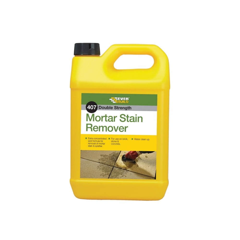 Everbuild 407 Mortar Stain Remover is a highly concentrated, fast acting, acid based formula (18% strength), which dissolves mortar and cement stains, ingrained dirt and most paints on mineral surfaces such as brick, render and concrete.