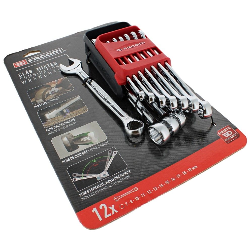 The 440.JP12APB Metric Combination Spanner Set by Facom is a robust and versatile toolset designed for both professional tradespeople and DIY enthusiasts. Crafted from high-quality materials, these spanners combine compactness with exceptional strength, meeting aeronautical standards for mechanical performance. The set features the OGV® profile with a 12-point ring, ensuring powerful tightening while protecting the nut. The ring ends are angled at 15° to provide increased access in tight spaces. Finished with a high-quality satin chrome, this set includes a convenient pocket holder for optimised storage. The set contains 12 spanners in sizes ranging from 7mm to 19mm, making it ideal for a wide range of applications.