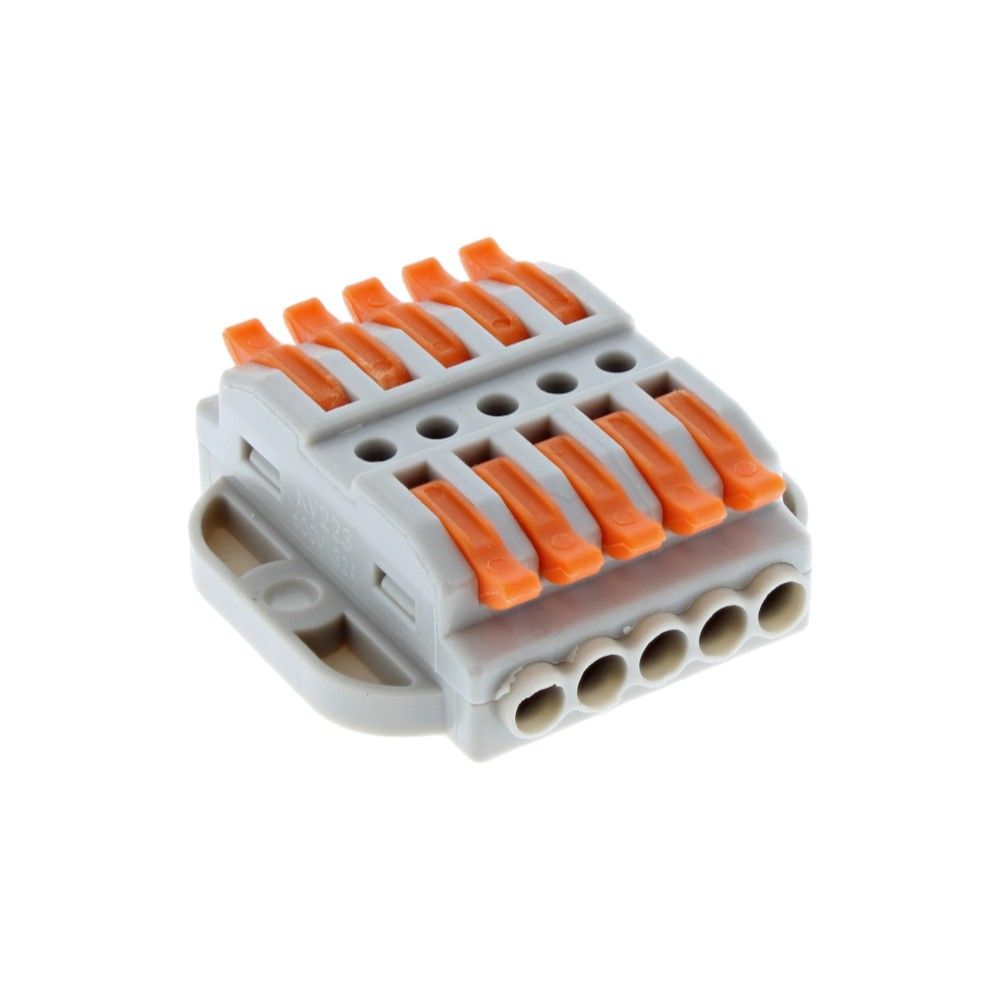 The 5 Way, Quick Wire Splice Connector Splitter is a genuine part designed for efficient electrical connections in construction and garden machinery. Rated at 32A and 250V AC, this connector ensures reliable performance in various applications. It is constructed from durable materials, featuring a compact design that facilitates easy installation. Ideal for tradespeople and DIY enthusiasts, this connector supports a wiring range from 0.08mm² to 4mm² (28AWG to 12AWG) and requires a strip length of 10mm. This versatile component is essential for maintaining and repairing electrical systems in a wide range of tools and machines.