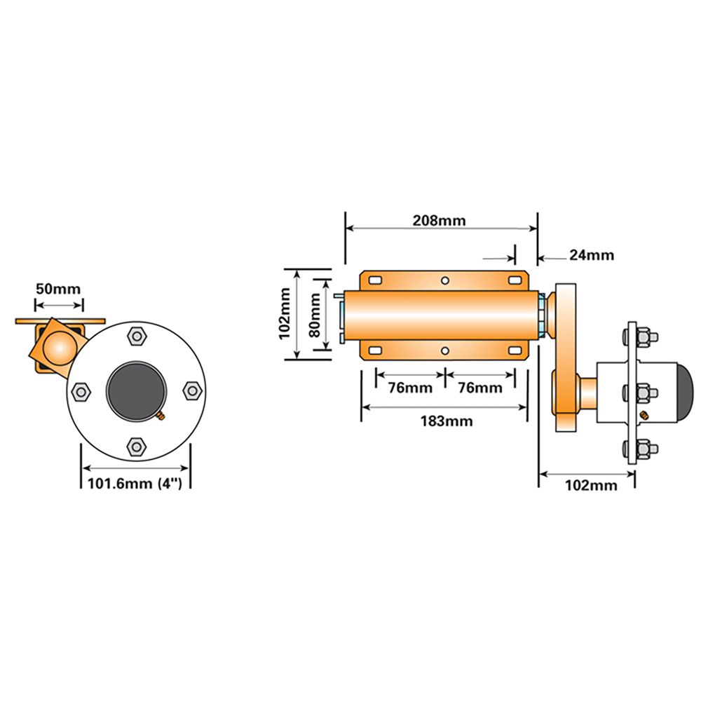 Pair of 500Kg Suspension Units & Hub. Essential trailer parts. Suitable for use with 8″ and 10″ wheels with 4 studs on 4″ (101.6mm) PCD