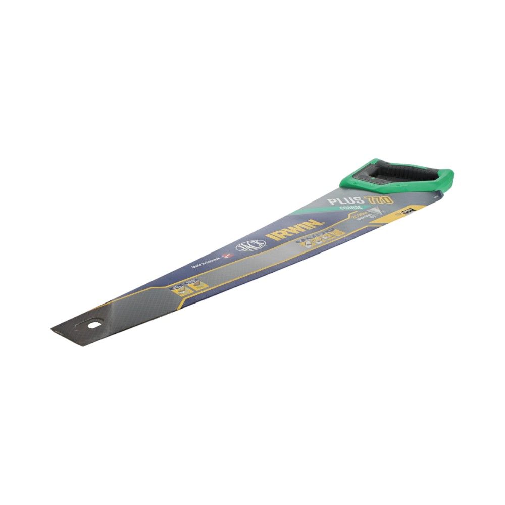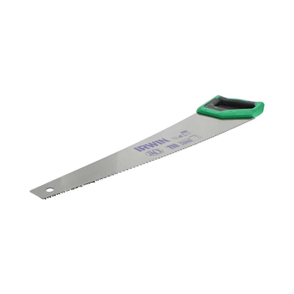 The IRWIN Jack 770UHP Coarse Hardpoint Handsaw is a robust hand tool for fast, reliable crosscutting in timber and common sheet materials. With a 550mm (22 inch) blade, it balances reach and control for site and workshop use. A steel blade with induction-hardened hardpoint fleam-toothed edges gives long-lasting sharpness and efficient cutting across the grain. The ergonomic soft-grip handle supports a secure hold and better guidance through the cut, helping reduce hand fatigue during longer sessions. Suitable for both professional trades and DIY, it performs well on structural timber, rough carpentry, and general wood cutting. Model references include JAK770UHP550 and 10505211, making it easy to identify for replacements or fleet standardisation.