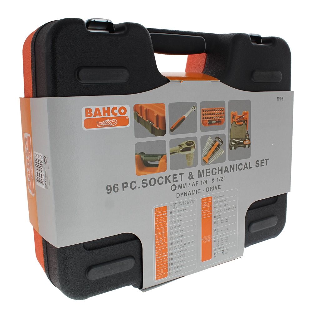 The 95 Piece 1/4" and 1/2" Square Drive Socket and Mechanics Set is a comprehensive toolkit designed for both professional tradespeople and DIY enthusiasts. Manufactured by Bahco, this genuine set is crafted from high-performance alloy steel, ensuring durability and strength. The matt finish and Dynamic Drive™ profile protect the sockets from wear and damage. This versatile set is ideal for various mechanical and maintenance tasks, providing essential tools for working on construction and garden machinery. It comes in a robust, oil and temperature resistant polypropylene case, making it easy to transport and store.