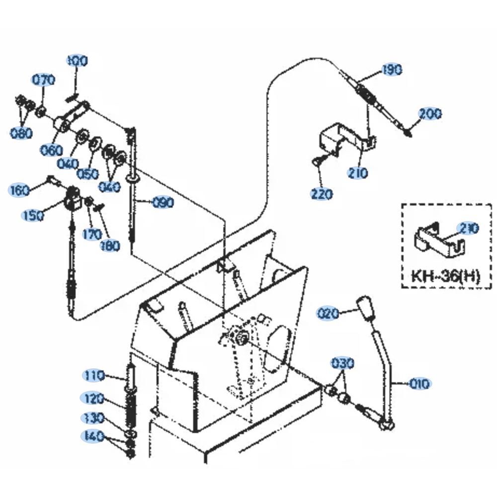 The Accelerator Lever Assembly for the Kubota KH36 Mini Excavator is designed to ensure precise control and efficient operation. This assembly includes components such as levers, springs, and brackets, which are essential for maintaining the excavator's performance. Genuine Kubota parts ensure compatibility and reliability, supporting the machine's functionality in various construction tasks.