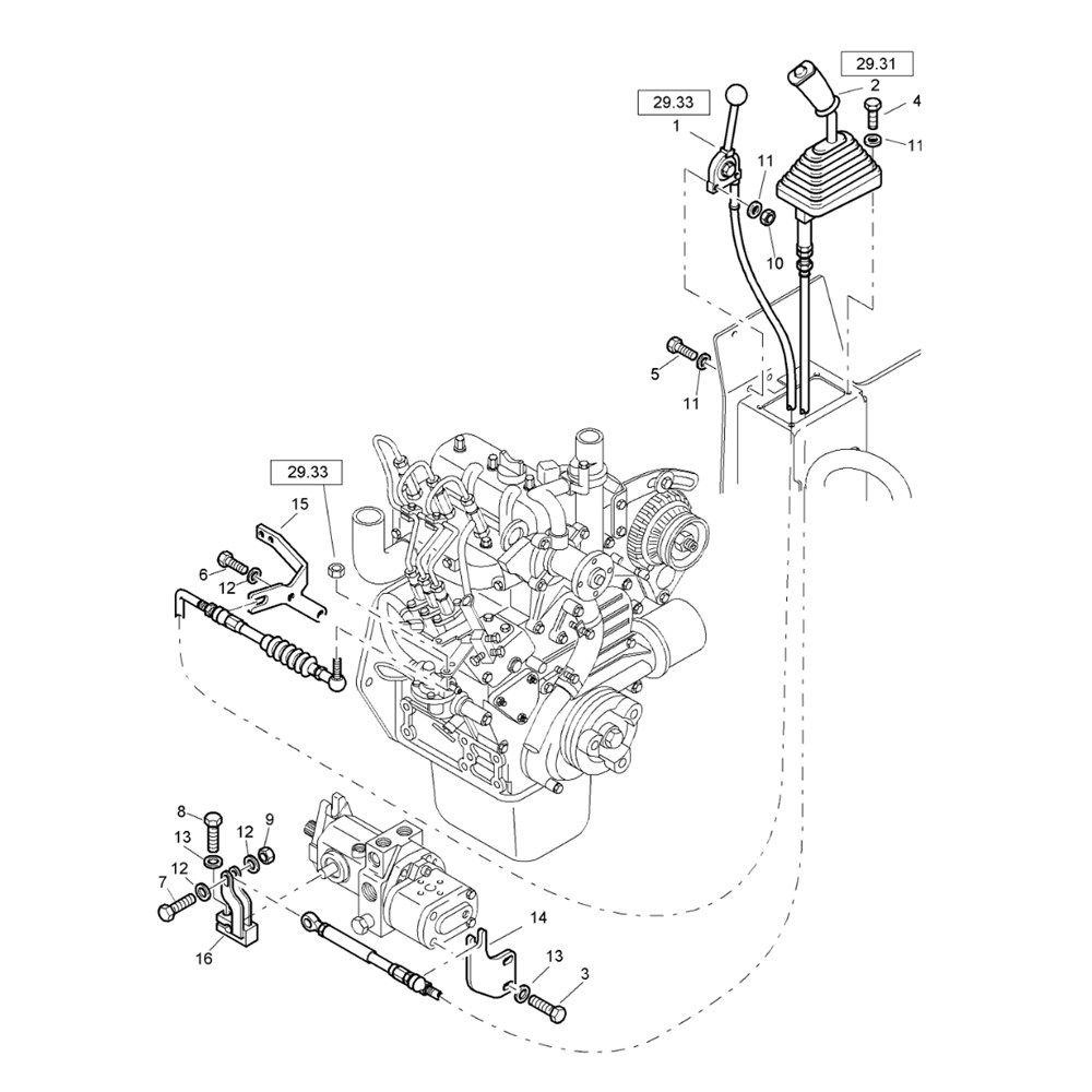 The Actuation Assembly for the Bomag BW 80 AD-2 Roller ensures efficient operation and control of the machine. This assembly includes key components such as levers, springs, and linkages, which are crucial for the precise actuation of the roller's functions. Designed to fit specific serial numbers, it maintains the reliability and performance of your Bomag roller.