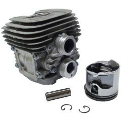 Today we're going to change the Cylinder and Piston on a Stihl TS410 Disc Cutter. To do this you need to get the machine down to a short engine. We have linked our video on how to do this in the description below. Once that's done you can continue with this tutorial. Using a 13mm spanner loosen the decompression valve. You can now completely free the valve by screwing it off by hand. Turn the short engine upside down. Remove the four screws based in the crankcase to detach the cylinder from the machine using a torx spanner. When doing this, take note of which way the cylinder is facing as this will have to be placed back in the same way. This will then reveal the cylinder gasket. Remove the gasket by hand. As you're taking it off, make a note of how the gasket is placed. Once the gasket is off, use a pair of pliers and remove the spring which sits inside the piston. Now that is removed, use a tool to help push out the piston pin, carefully free this from the machine. Then finally remove the needle bearing which sits within the crank, make sure you don't loose these components. Before fitting the piston, it's good practice to lubricate the crank with some oil. This can help the machine run smoother. Then place the needle bearing through the crankshat, again lubricate it with some oil. When placing the piston back in position, you need make sure the arrow is pointing towards where the exhaust will be fitted. Place the piston over the crank and turn the engine on its side. While on its side push the pin through the centre of the piston. Then using the pliers, place the piston spring back into position. Ensure that the springs is secure and in the correct position. Now, place the new cylinder gasket in position. Once in position you are ready to put the cylinder back on the machine. However, before doing this you must ensure the gaps in both of the piston rings are centred around the marks on the piston. As a tip use some oil to lubricate the piston before placing the cylinder over it. Make sure the piston rings are in the correct position,Now place the Cylinder on top of the piston, ensuring it is the correct way. The exhaust port should be facing the way the arrow is pointing on the piston. Which is where the exhaust will be seated. Once it's on the machine push it down and turn the crank to make it more secure. While holding the cylinder, turn the machine upside down. Now using a torx spanner screw in the four screws to secure the cylinder and piston in place. Make sure it's secure. That's how you change a Cylinder and Piston on a stihl TS410 Disc cutter.