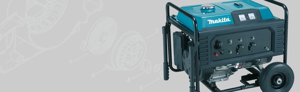 This section contains useful resources for Makita's EG5550A Generator. The EG5550A 5.5KW petrol generator has a high performance by an OVH engine and an AVR alternator. It also features an indication lamp indicates when generator is producing power, current meter and voltage meter, wheels fitted for easy mobility and has extreme reliability and durability.