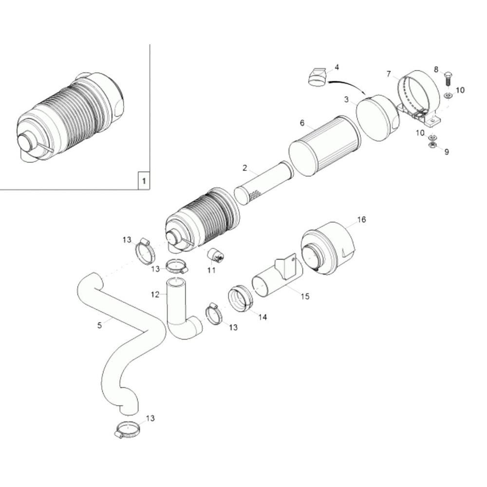 The Air Cleaner Assembly for the Wacker 50Z3 Mini Excavator is designed to ensure optimal engine performance by filtering out dust and debris. This assembly includes key components such as filters, seals, and clamps, essential for maintaining clean airflow and reducing engine wear. Genuine Wacker Neuson parts are available for reliable maintenance and repair.