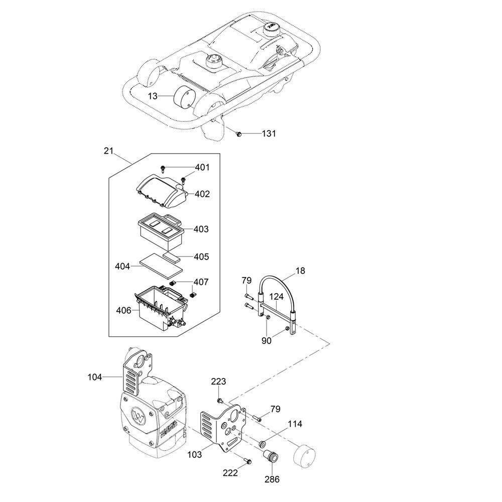 The Air Cleaner Assembly for the Wacker BS70-2i Trench Rammer is designed to ensure optimal engine performance by filtering out dust and debris. This assembly includes components such as filters, seals, and clamps, which are crucial for maintaining clean airflow and reducing engine wear. Genuine Wacker Neuson parts ensure compatibility and reliability for your equipment.