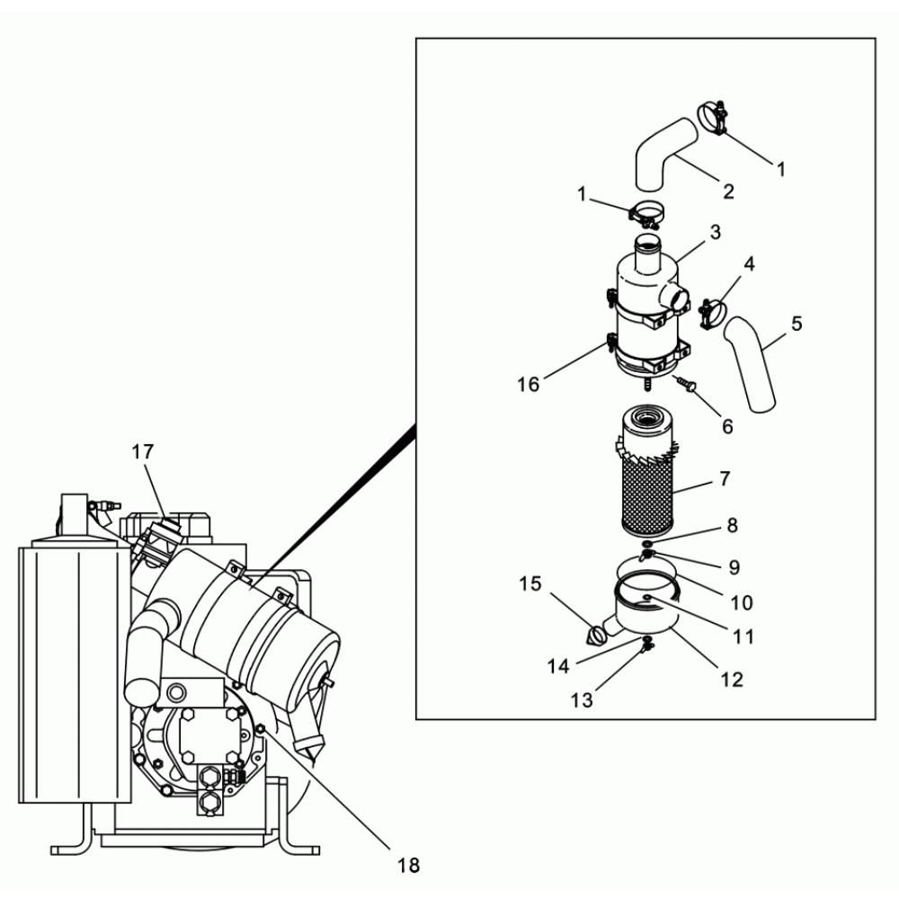 The Air Cleaner Assembly for the Wacker RT560 Trench Roller is designed to ensure optimal engine performance by filtering out dust and debris. This assembly includes key components such as filters, seals, and housings, which help maintain clean airflow and prolong engine life. Essential for routine maintenance, it supports the efficient operation of the trench roller in various conditions.