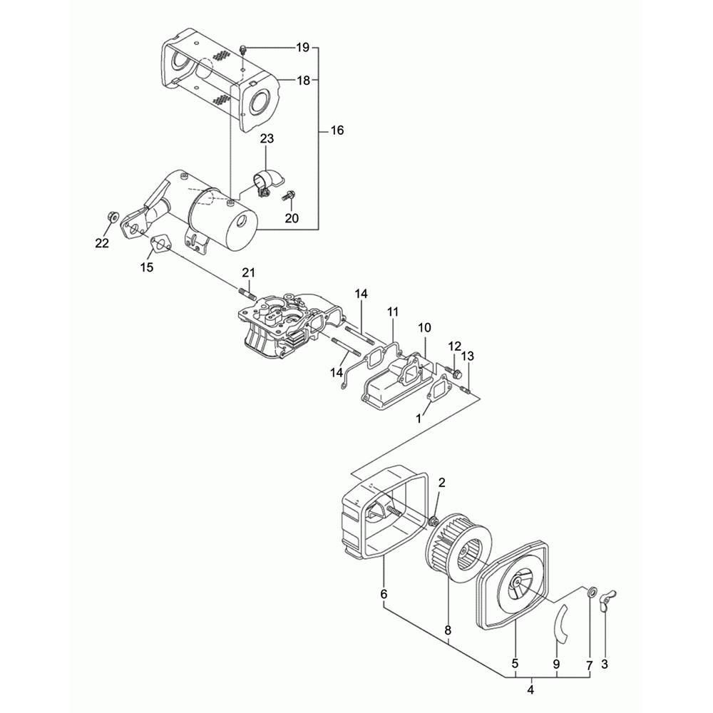 The Air Cleaner Assembly for the Wacker VP2050Y Compactor is designed to ensure optimal engine performance by filtering out dust and debris. This assembly includes components such as filters, housings, and seals, which are essential for maintaining clean airflow and protecting the engine from wear. Suitable for routine maintenance and repair, it helps extend the service life of your compactor.