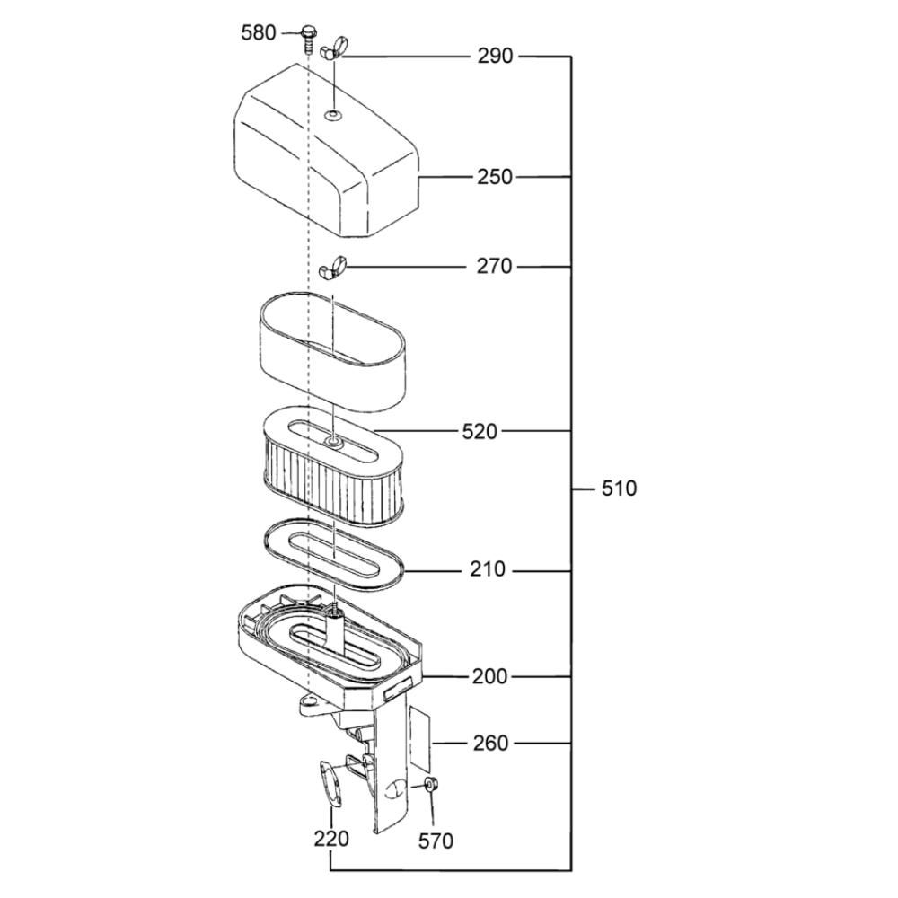 The Air Cleaner Assembly for the Wacker WM 130 Engine is designed to ensure optimal engine performance by filtering out dust and debris. This assembly includes components such as filters, seals, and clamps, which work together to maintain clean airflow and protect the engine from wear. Essential for routine maintenance, it helps prolong the engine's service life.