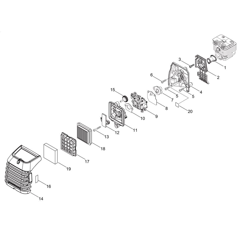 The Air Cleaner and Carburettor assembly for the ECHO SRM-2620TES/L Brushcutter includes key components to ensure optimal engine performance. This assembly helps maintain clean airflow and efficient fuel mixing, crucial for reliable operation. Components such as gaskets, springs, and levers are available, catering to both genuine and non-genuine part preferences.