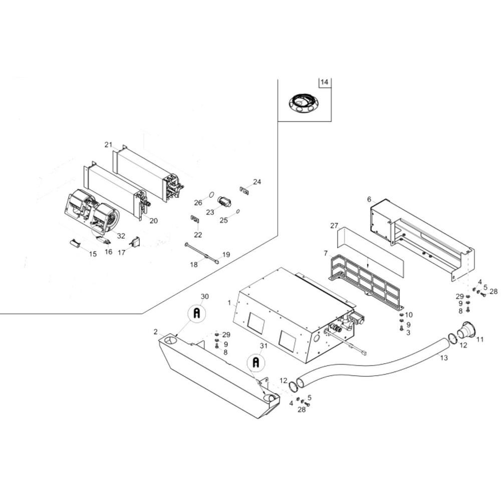The Air Conditioner Assembly for the Wacker 50Z3 Mini Excavator ensures optimal climate control for operator comfort. This assembly includes components such as compressors, condensers, and evaporators, designed to maintain efficient cooling performance. Genuine Wacker Neuson parts ensure compatibility and reliability, enhancing the excavator's operational efficiency.