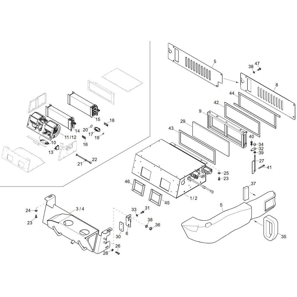 The Air Conditioner Assembly for the Wacker ET35 Mini Excavator ensures optimal climate control within the cab, enhancing operator comfort and efficiency. This assembly includes key components such as compressors, condensers, and evaporators, designed to maintain a consistent temperature. Genuine Wacker Neuson parts ensure compatibility and reliability, supporting the excavator's performance in various working conditions.