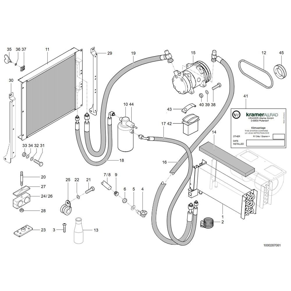 The Air Conditioner Assembly for the Wacker TH755 (416-04) Telehandler ensures optimal climate control during operation. This assembly includes components such as compressors, condensers, and evaporators, designed to maintain a comfortable working environment. Genuine Wacker Neuson parts guarantee compatibility and performance, enhancing the telehandler's efficiency and longevity.