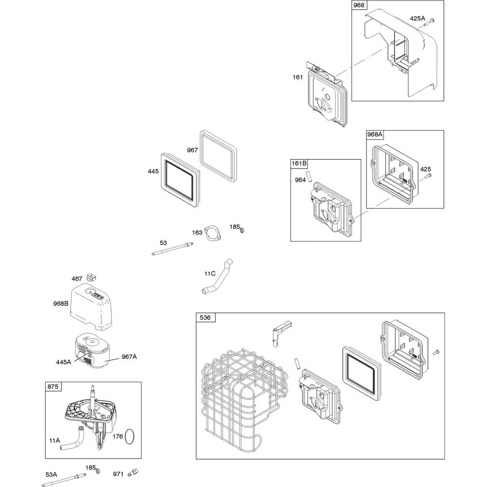 The Air Filter Assembly for Briggs & Stratton Model No. 20S237-0042-F1 is designed for the 1400 Series Horizontal Shaft Engine. It ensures optimal engine performance by filtering out dust and debris, protecting the engine from wear. This assembly includes various components such as hoses, clamps, and seals, available in both genuine and non-genuine parts.