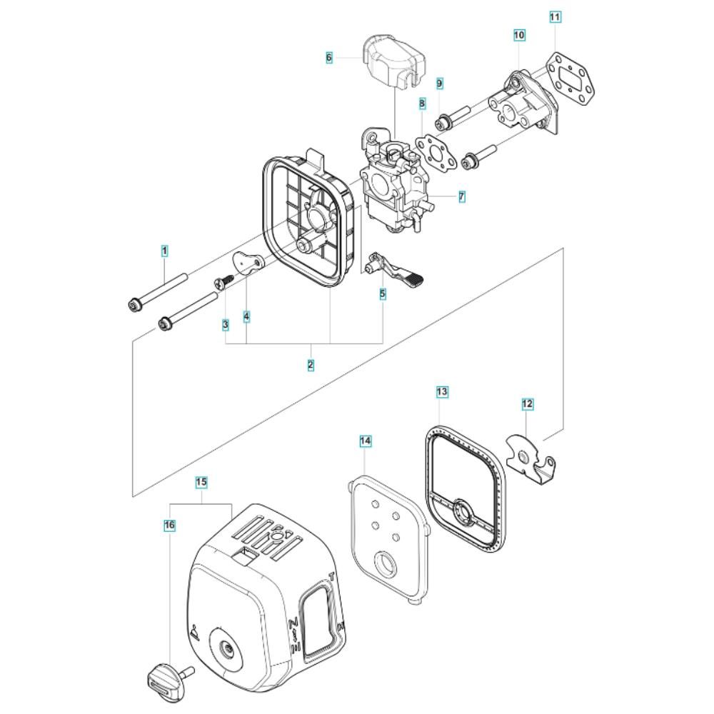 The Air Filter Assembly for the Husqvarna 143RST Brushcutter is designed to ensure optimal performance and longevity of your equipment. This assembly helps maintain clean airflow to the engine, reducing wear from dust and debris. Components may include hoses, clamps, and seals, essential for routine maintenance and repair.