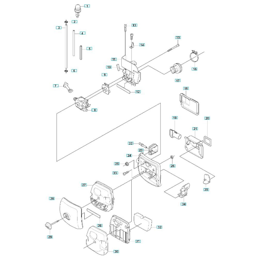 The Air Filter Assembly for the Husqvarna 343FRM Brushcutter is designed to ensure optimal engine performance by providing clean airflow. This assembly includes essential components like hoses, clamps, and seals, which help protect the engine from dust and debris, reducing wear and extending service life. Ideal for routine maintenance and repair, it ensures your brushcutter operates efficiently.