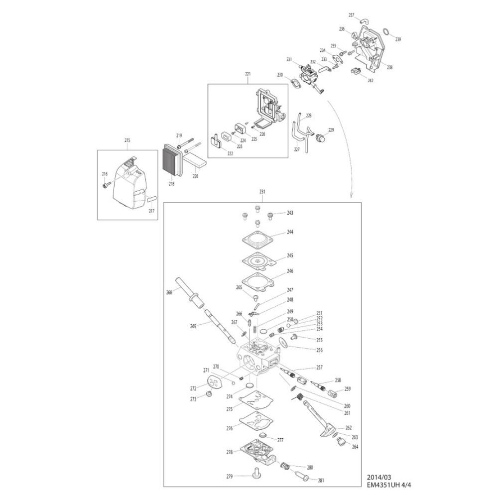 Maintain the performance of your Makita EM4351UH Brushcutter with this Air Filter and Carburettor assembly. Designed to ensure optimal engine function, these components help filter out dust and debris while regulating fuel flow. Available in genuine and non-genuine options, they are essential for routine maintenance and repair.