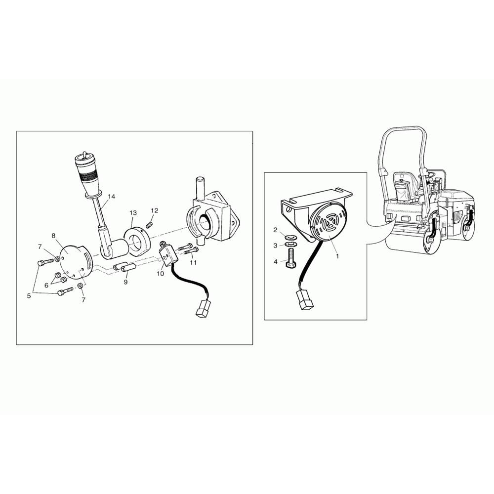 The Alarm Assembly for the Wacker RD25 Roller is designed to ensure safety and operational efficiency. This assembly includes components such as sensors, alarms, and connectors, which work together to alert operators to potential issues. Genuine Wacker Neuson parts ensure compatibility and reliability for the tandem roller.