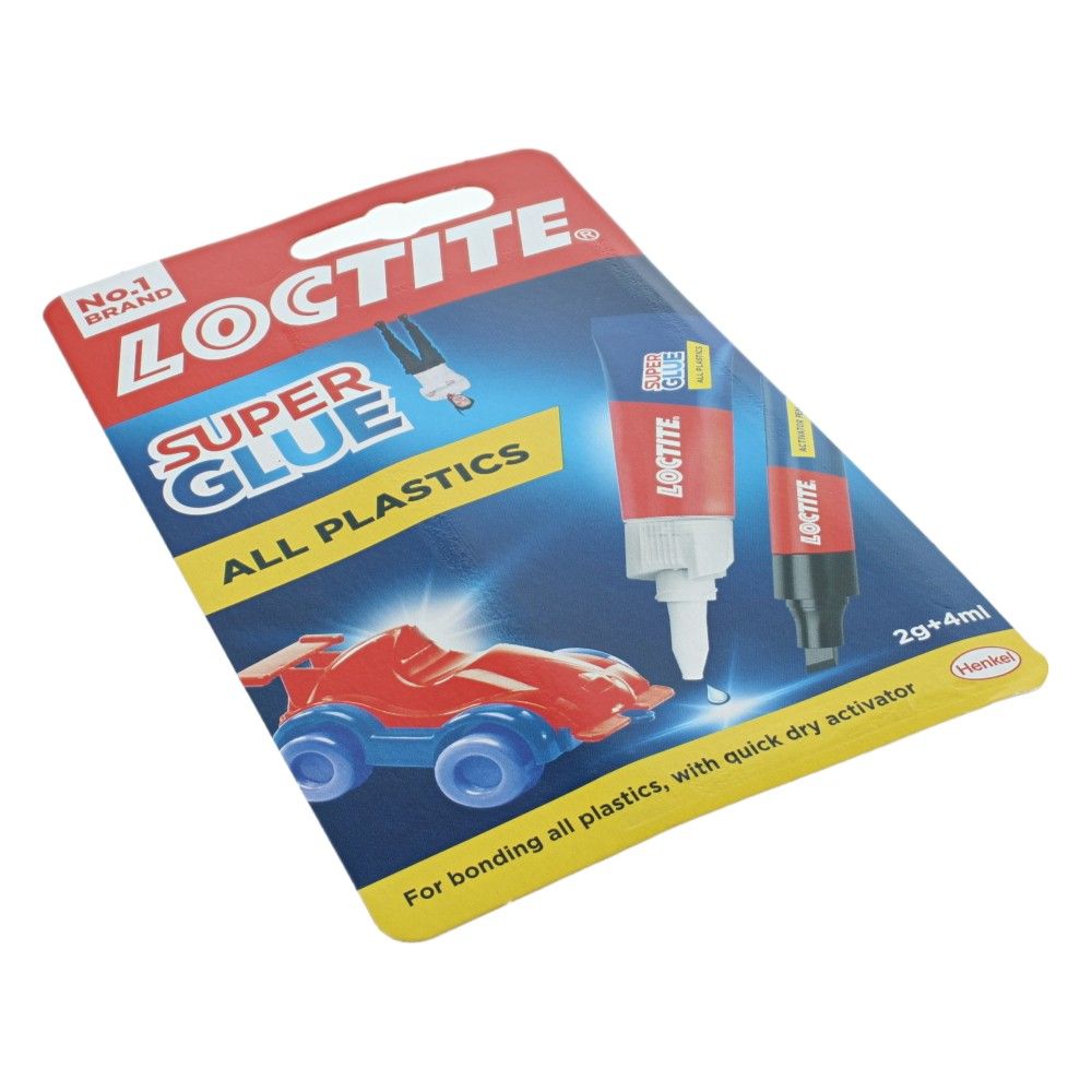 Loctite All Plastics Super Glue contains cyanoacrylate and has been specially designed to glue all types of plastic, including the most difficult plastics such as polyethylene (PE) and polypropylene (PP). It also glues metal, leather, wood and even rubber. The glue remains transparent even after drying.