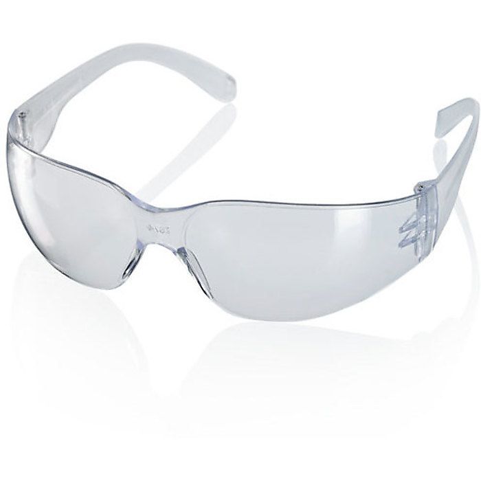 Safety specs, safety glasses, protective eyewear, eye protection, wrap-around clear lens glasses, EN166 spectacles, industrial clear glasses, work glasses, polycarbonate safety spectacles.