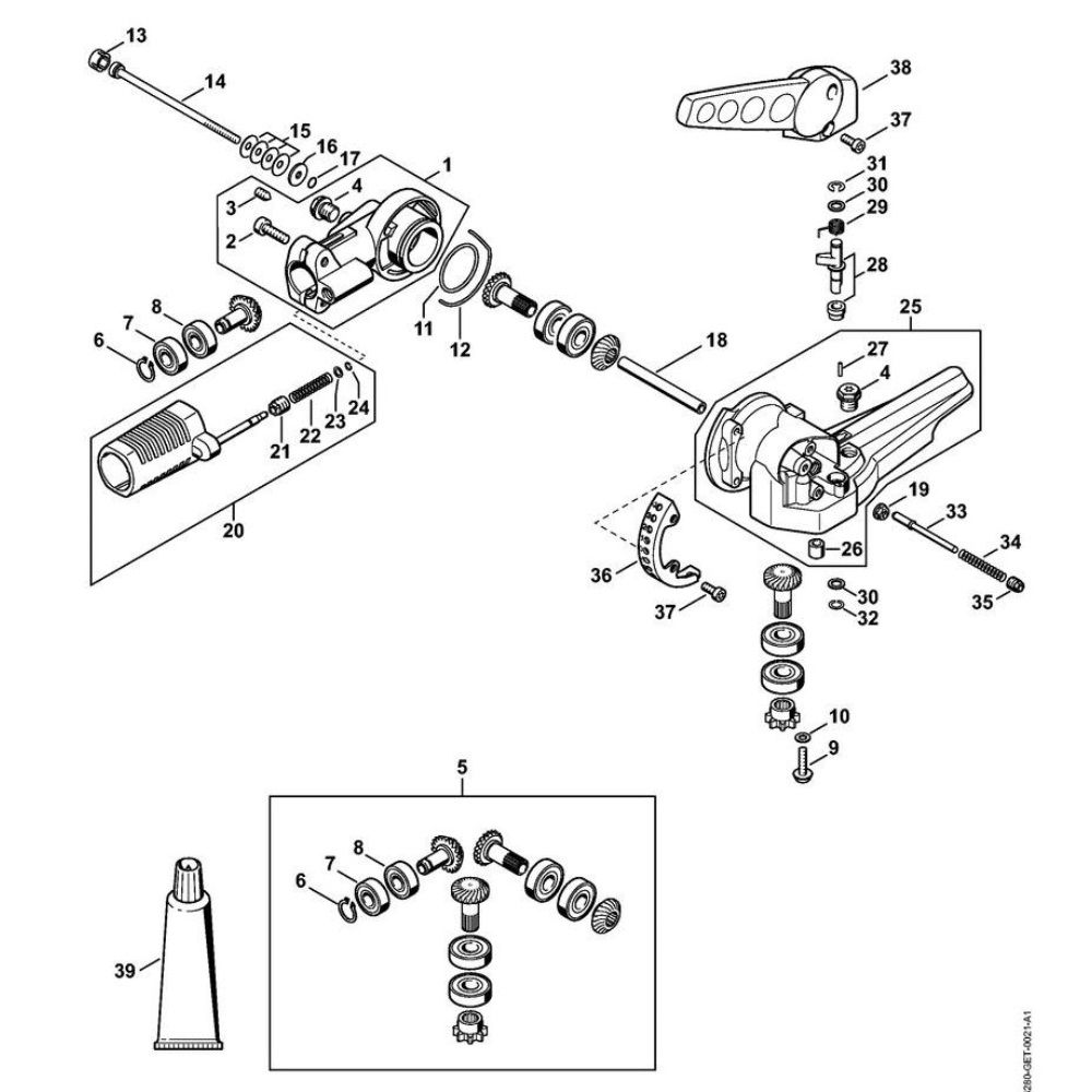 The adjustable angle drive for the Stihl HL 95 Long Reach Hedge Trimmer allows for precise cutting at various angles up to 135°. This genuine Stihl part ensures optimal performance and durability, making it ideal for maintaining hedges and shrubs. The angle drive facilitates efficient trimming by adjusting the cutting head to the desired position, enhancing user comfort and control.