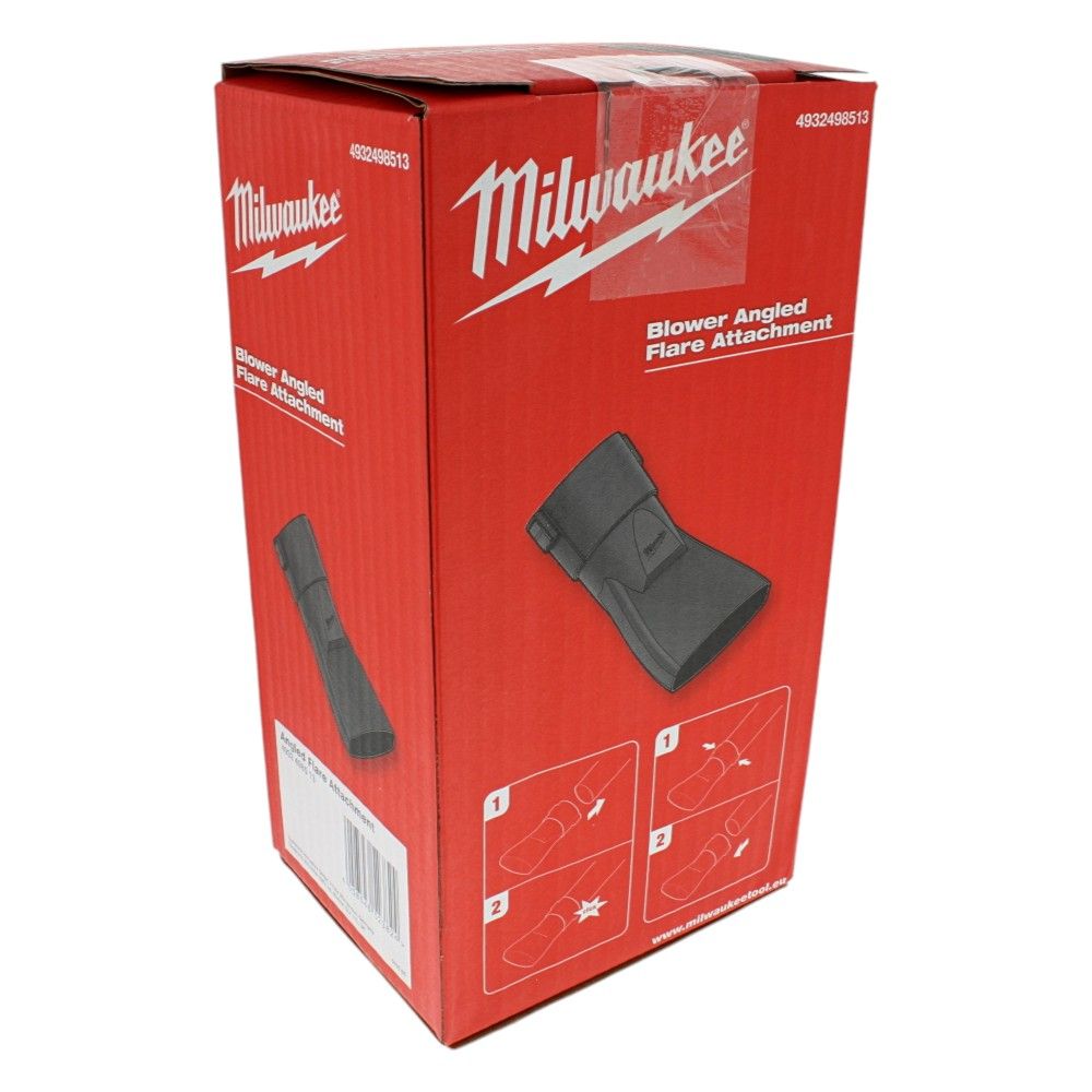 This angled flare attachment is typically used with Milwaukee blowers to improve the direction and efficiency of airflow. It is ideal for clearing debris from gardens, construction sites, and other outdoor areas, ensuring thorough and efficient cleaning.