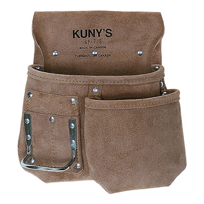 The Kuny's AP-719 Journeyman Half Apron is a robust brown split-grain leather tool apron designed to keep frequently used hand tools and fixings close to hand. Built for daily use on site or in the workshop, it helps carpenters, joiners, builders and DIY users work efficiently with organised storage across multiple pockets. The durable leather resists abrasion while softening with use for comfortable wear. Reversed nail pockets make grabbing fasteners quick and tidy, and a heavy steel hammer holder keeps your hammer secure between tasks. Smaller dedicated pockets hold a utility knife, pencils or markers. If you're looking for a compact waist-worn solution that stays out of the way yet carries the essentials, the AP-719 (AP719) is a dependable choice.