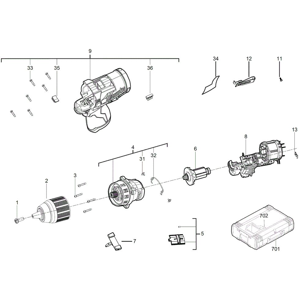This assembly for Milwaukee M12FDD Drill Drivers includes genuine spare parts essential for maintaining optimal performance. Designed for routine maintenance and repair, it ensures the drill operates efficiently. Typical components may include gears, chucks, switches, and brushes, providing comprehensive support for your tool.