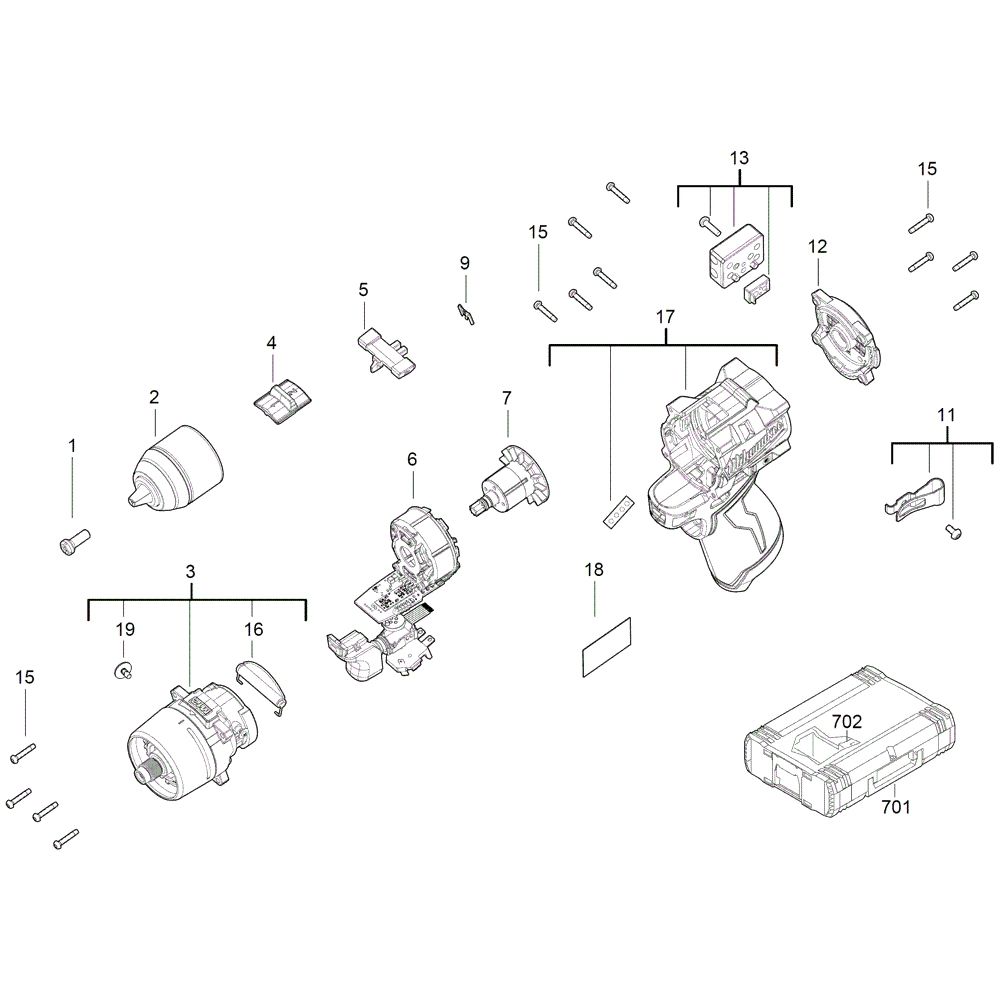 The assembly for Milwaukee M12FDD2 Drill Drivers includes genuine spare parts designed to maintain optimal performance and extend the tool's lifespan. Essential components such as gears, chucks, and switches ensure reliable operation and efficient power transfer. Suitable for routine maintenance and repairs, these parts help keep your drill driver in top condition.