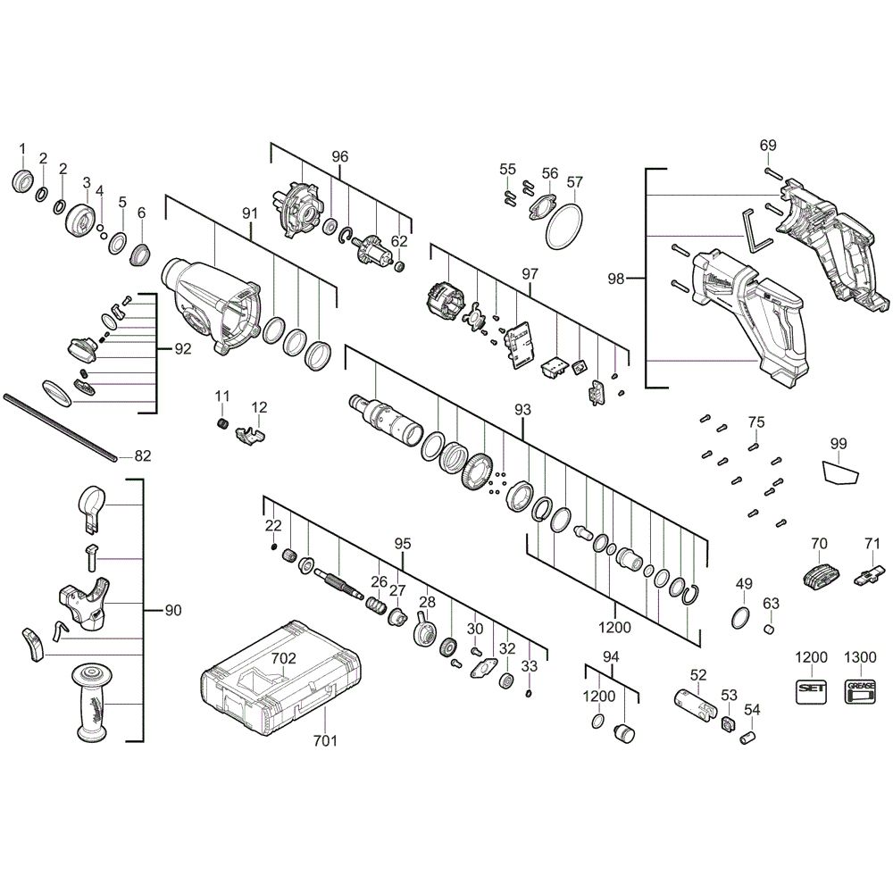 The assembly for the Milwaukee M18BLHACD26 Hammer Drill includes genuine spare parts designed to maintain optimal performance and extend the tool's lifespan. Essential components such as gears, bearings, and switches ensure reliable operation during demanding tasks. This assembly supports routine maintenance and repairs, helping to keep your drill in top condition.