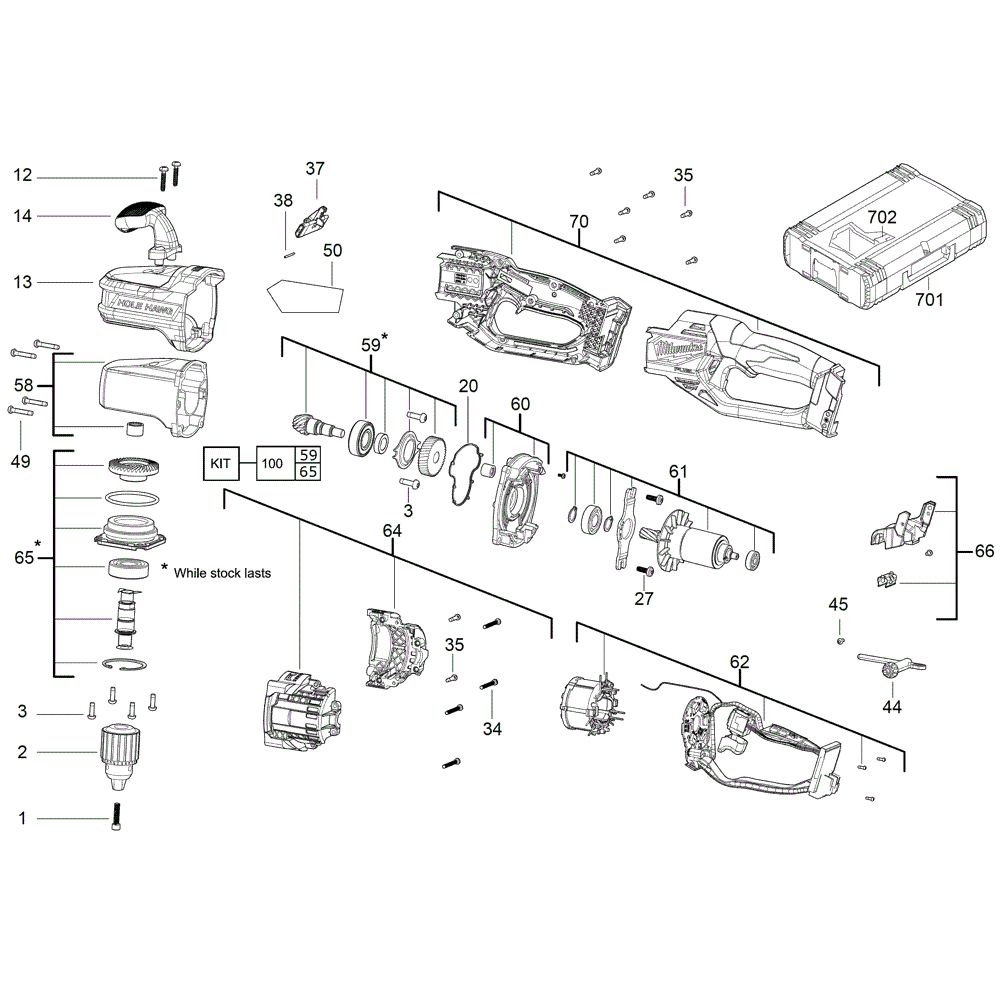 The assembly for Milwaukee M18CRAD2 Drill Drivers includes genuine spare parts designed to maintain optimal performance. This set ensures the drill's reliability and longevity by providing essential components such as gears, chucks, and switches. Ideal for routine maintenance and repairs, it supports efficient drilling operations.