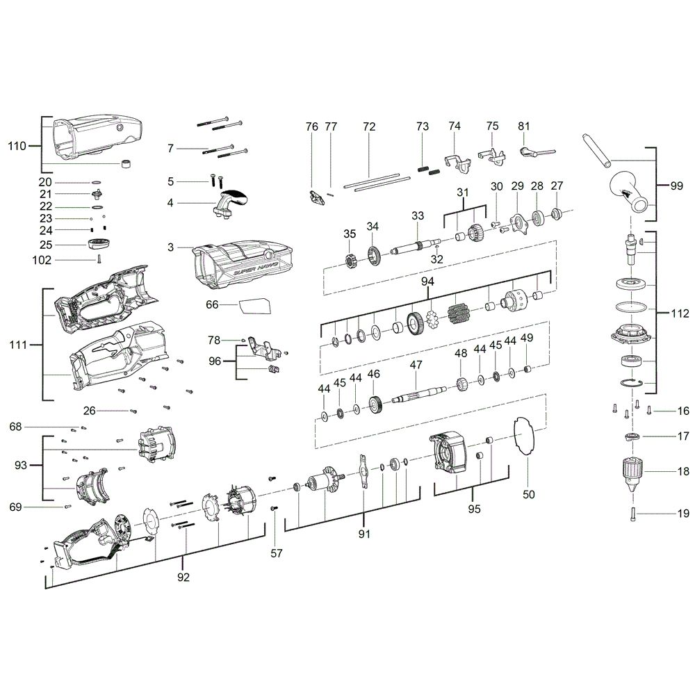 The Assembly for Milwaukee M18FRAD2 Drill Drivers includes genuine spare parts designed to maintain the performance and longevity of your drill. This assembly ensures optimal operation by replacing worn components, helping to prevent downtime and extend the tool's service life. Typical parts include gears, bearings, and switches, all tailored for the M18FRAD2 model.