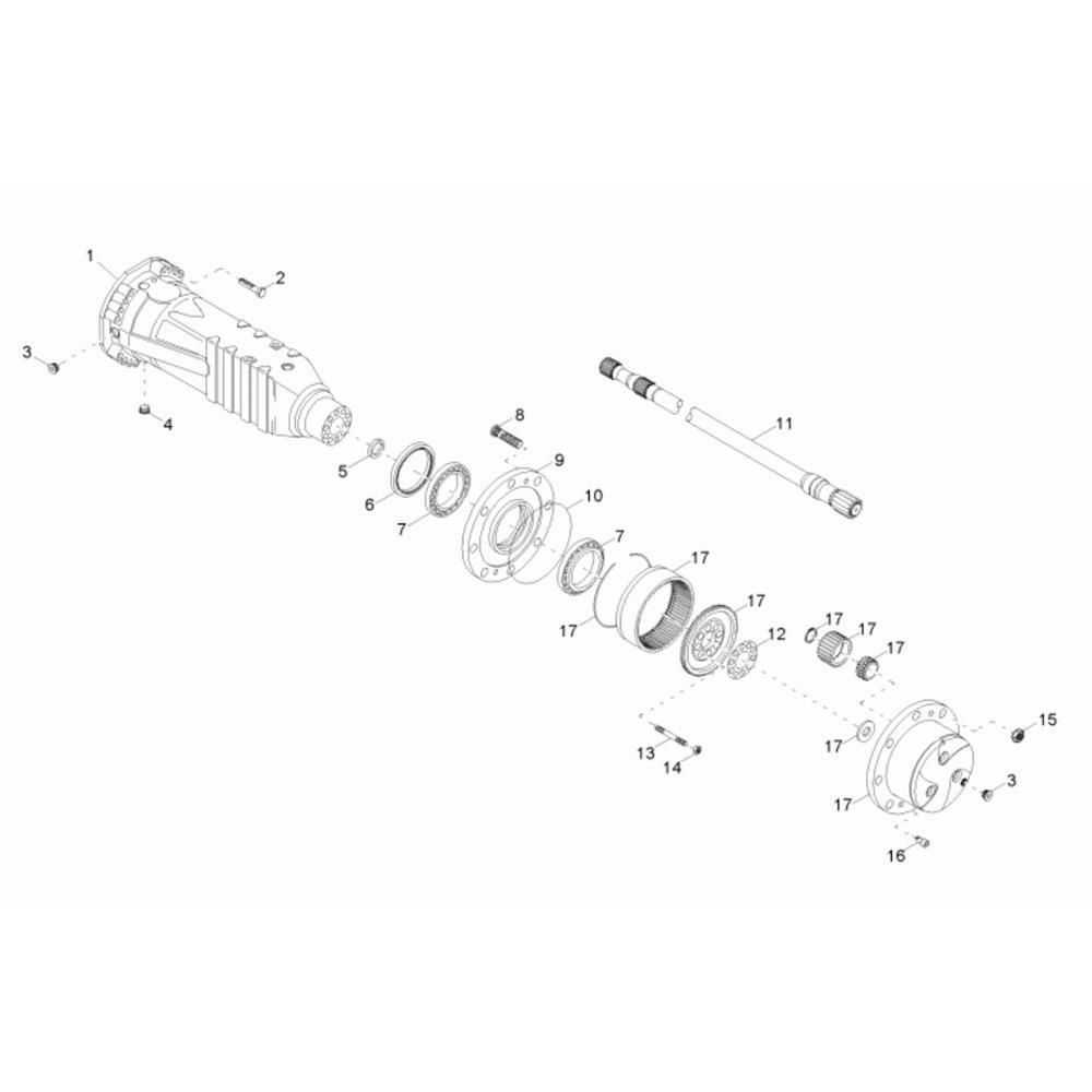 The Axle Case and Wheel Hub Assembly for the Neuson 6001 Dumper includes essential components for maintaining the vehicle's front wheel functionality. This assembly ensures smooth operation and stability, crucial for heavy-duty tasks. Components such as bearings, seals, and fasteners are included to support the dumper's performance. Genuine Wacker Neuson parts ensure compatibility and reliability.