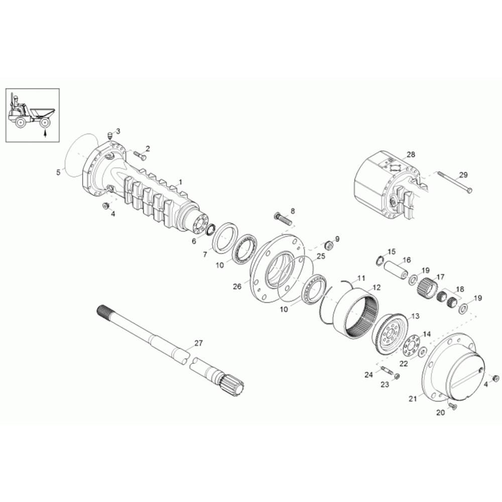 The Axle Case and Wheel Hub Assembly for the Wacker 4001 Dumper includes key components to ensure optimal performance and durability. This assembly is crucial for maintaining the dumper's stability and manoeuvrability. Genuine Wacker Neuson parts are designed to fit perfectly, providing reliable operation and extending the machine's service life.