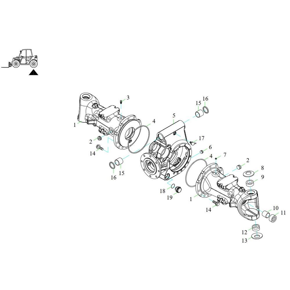 The Axle Tube Rear Assembly for the Wacker TH408 Telehandler is crucial for maintaining the stability and performance of the machine. This assembly includes components such as bearings, seals, and brackets, ensuring smooth operation and durability. Designed specifically for the Wacker Neuson Telehandler, it supports the rear axle's function, providing reliable support and alignment.