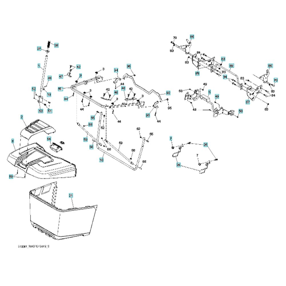 The Bagger Assembly for Husqvarna CTH 194 Ride-On Mowers is designed to efficiently collect grass clippings, ensuring a tidy lawn. This assembly includes various components such as bags, frames, and mounting hardware, which work together to facilitate easy attachment and removal. Available in both genuine and non-genuine parts, it supports effective lawn maintenance.