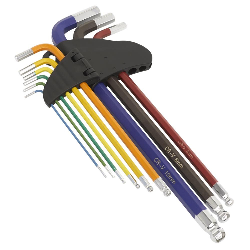 Ball-End Hex Key Set 9pc Colour-Coded Extra-Long Metric
