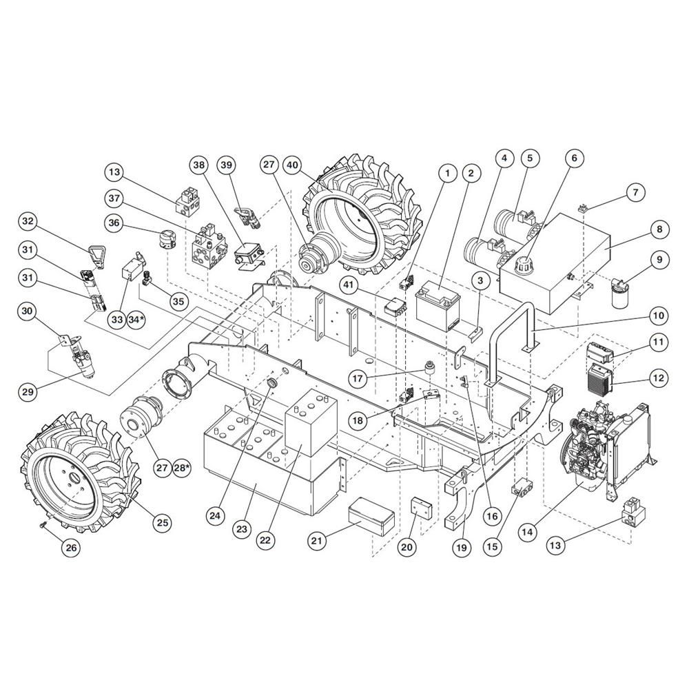The Base Assembly for Niftylift HR12 SP34 4X4 Access Platforms is designed to support the machine's stability and functionality. This assembly includes key components such as brackets, mounts, and fasteners, ensuring the platform operates efficiently and safely. Genuine Niftylift parts are used to maintain the integrity and performance of the access platform, providing reliable support for various tasks.