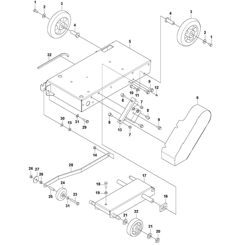 The Base Plate Assembly for the Husqvarna FS500 E Floor Saw is designed to provide stability and precision during cutting operations. This assembly includes key components that ensure the saw operates smoothly and efficiently. Genuine Husqvarna parts are used to maintain the integrity and performance of the floor saw, supporting its use in demanding construction environments.