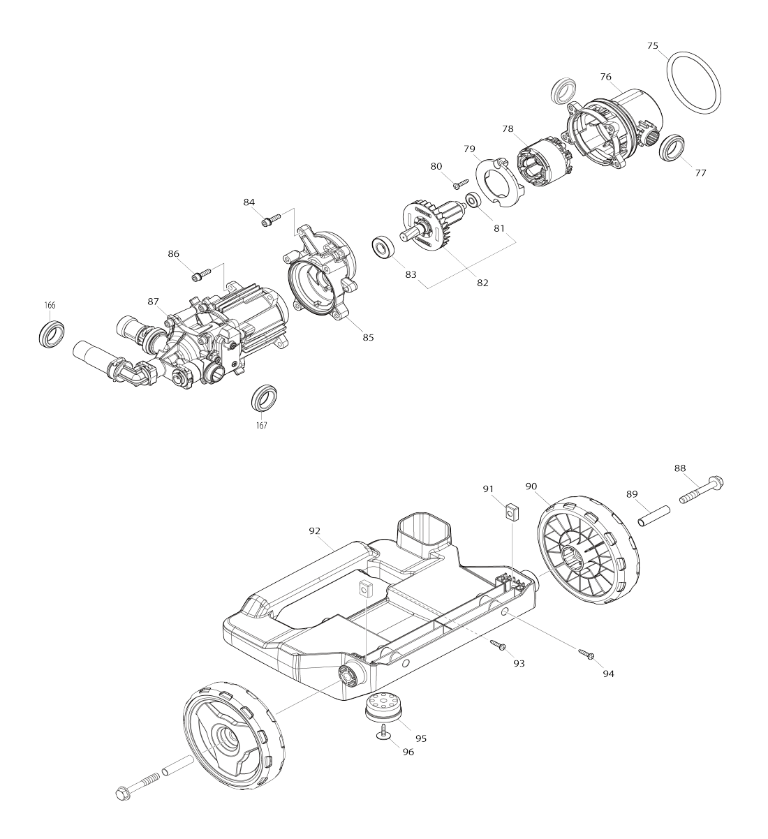 The Base and Wheel Assembly for the Makita HW001G Pressure Washer includes essential components to ensure stability and mobility during operation. This assembly is crucial for maintaining the pressure washer's performance and ease of use. Components typically include the base frame, wheels, axles, and mounting brackets, all designed to support the machine effectively.