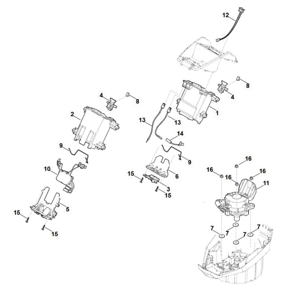 The Battery Bracket Assembly for the Stihl MVP 600.1 Cordless Powerhead ensures secure battery placement and reliable operation. This genuine Stihl part is designed to fit seamlessly, providing stability and protection during use. Essential for maintaining the powerhead's performance, the assembly includes components like brackets and fasteners.
