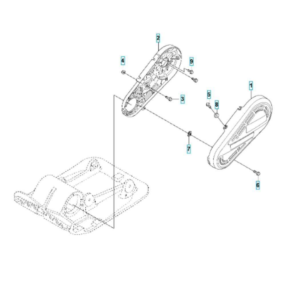 The Belt Guard Assembly for the Husqvarna LF 80 LAT Compactor is essential for protecting the belt and ensuring optimal performance. This assembly helps prevent debris from damaging the belt, thus extending the lifespan of the compactor. It includes components like covers and fasteners, designed to fit seamlessly with the Husqvarna model.